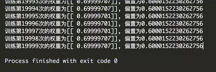 print("训练第{}次的权重为{}, 偏置为{}".format(i,weight.eval(), bias.eval()))