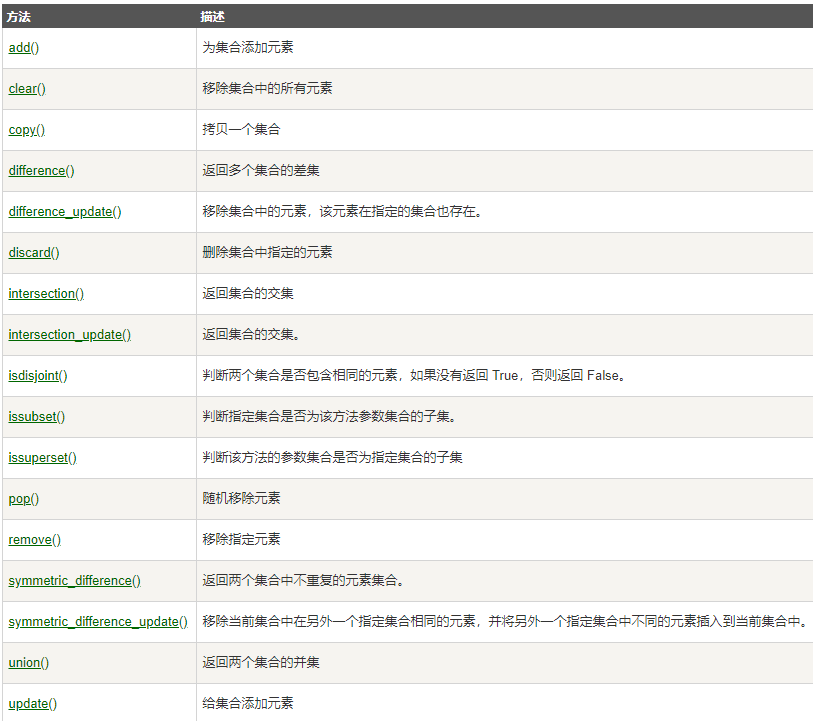 set集合是一个无序的不重复元素集合。可以使用大括号{}或set()函数创建集合;创建空集必须用set()。