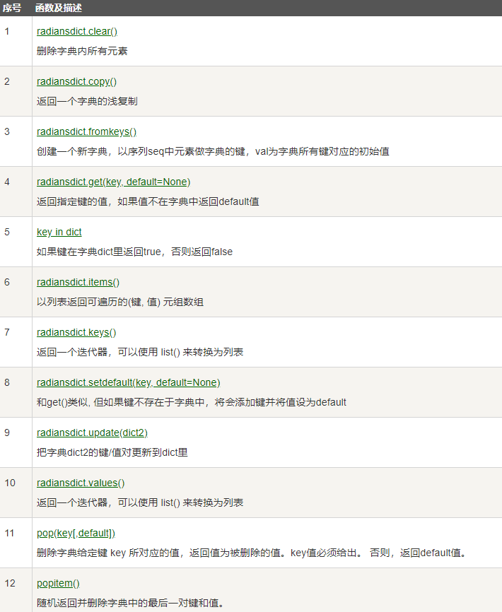 字典是另一种可变容器模型,且可存储任意类型对象。